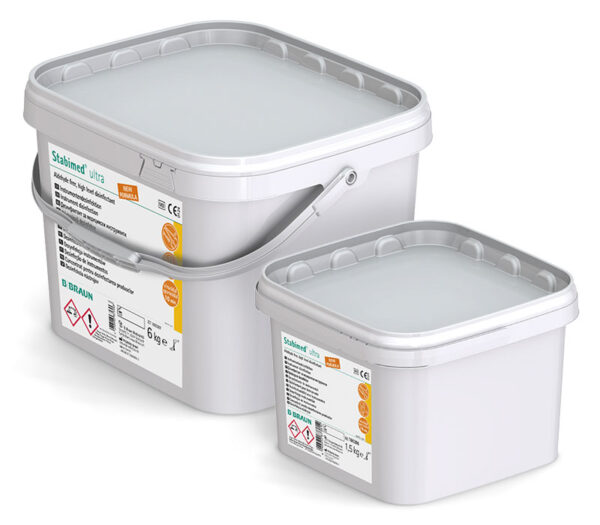 B. Braun Stabimed ultra – Hochleistungsdesinfektionsmittel mit breitem antimikrobiellem Wirkspektrum für thermostabile und thermolabile Instrumente auf Peressigsäurebasis.