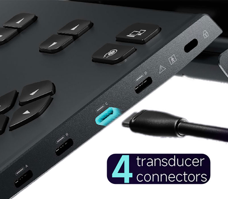 Der leistungsstarke, wiederaufladbare Akku gewährleistet eine ununterbrochene Nutzungsdauer von bis zu 180 Minuten und eine Standby-Zeit von bis zu 36 Stunden mit einer einzigen Ladung. Dies ermöglicht einen netzunabhängigen Betrieb über längere Zeiträume. Für eine hohe Konnektivität sorgen vier Sondenanschlüsse, die über USB-C realisiert werden.