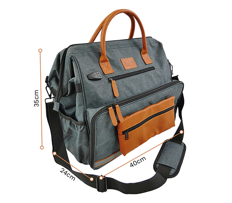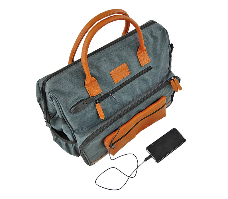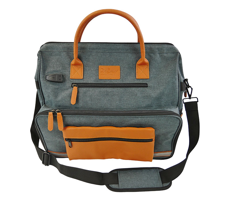 Für den mobilen Einsatz ist ein externer USB-Anschluss mit Ladekabel integriert. Das Material der Tasche ist wasserabweisend und abwaschbar. Gepolsterte Griffe und ein verstellbarer Schultergurt sorgen für einen hohen Tragekomfort, während ein Namensschild die Personalisierung ermöglicht. Reflektierende Streifen sorgen für eine verbesserte Sichtbarkeit bei Dunkelheit.