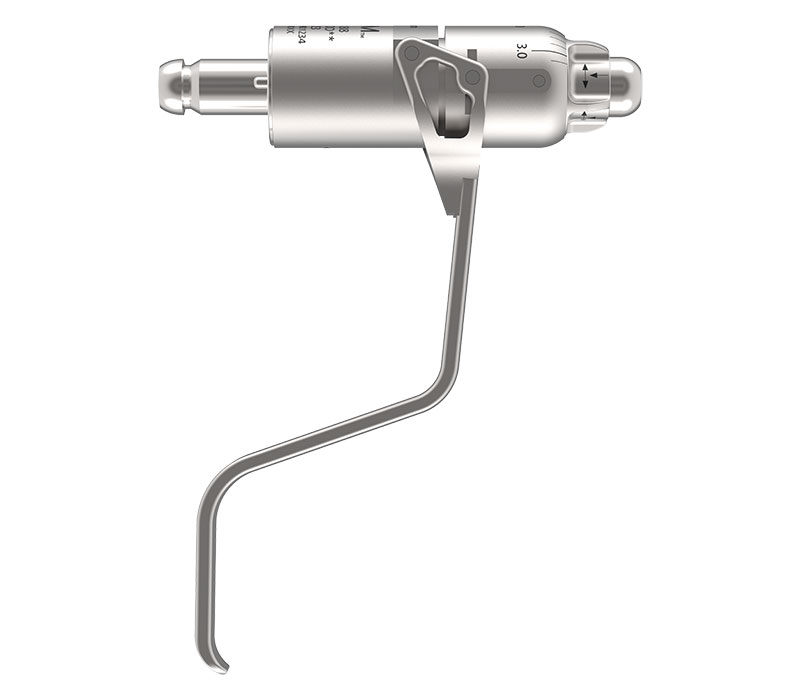 Die Handhabung ist auf maximale Kontrolle und Flexibilität ausgerichtet: Über eine Einstellhülse wird der Drahtdurchmesser (0,6 bis 3,2 mm) vorgewählt. Die Arbeitslänge lässt sich durch axiales Verschieben des Drahtes präzise justieren. Der Spannhebel ermöglicht eine variable Regulierung der Klemmkraft, was dem Operateur ein feinfühliges taktiles Feedback gibt und den Draht sicher für das Einbringen in den Knochen fixiert. Die schlanke, neu gestaltete Front verbessert zudem die Sicht auf das Operationsfeld.