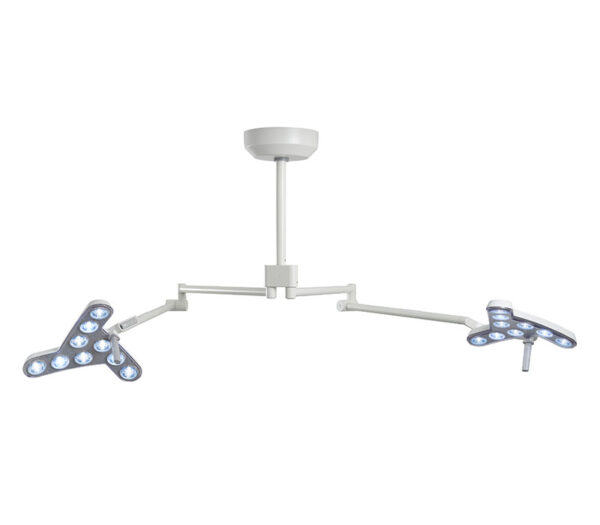 Die Derungs TRIANGO 100-1 DUO LED OP-Doppelleuchte verfügt über zwei unabhängig voneinander schwenkbare Leuchten, die jeweils eine erstklassige Lichtqualität mit einer Leuchtdichte von 100.000 Lux bieten. Das Lichtfeld sorgt für realitätsnahe Farbdarstellung mit einer Farbwiedergabe von > 96 (Ra).