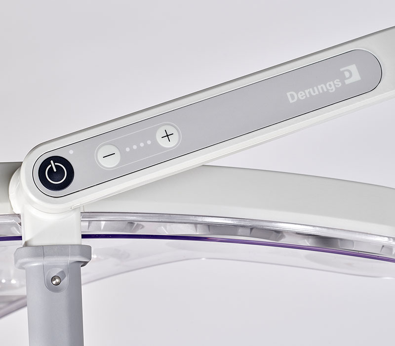 Über die hygienische Folientastatur lässt sich das Licht mit einer festen Farbtemperatur von 4.700 Kelvin in 4 Stufen dimmen. Modernste LED-Technologie garantiert klares, flimmerfreies Licht und das homogene, schattenfreie Beleuchtungsfeld hat einen festen Durchmesser von 18 cm bei einem Meter Abstand und erreicht eine Ausleuchtungstiefe von 80 cm.