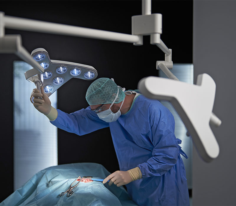 Wartungsfreie TENO-Schwenkarme und die innovative Diamant-Cluster-Optik ermöglichen eine nahezu schattenfreie Ausleuchtung des Beleuchtungsfeldes oder die gezielte Ausrichtung auf zwei separate Behandlungsbereiche. Die energieeffizienten LEDs halten die Wärmeentwicklung minimal. Damit eignet sich die TRIANGO 100-1 LED OP-Leuchte optimal für anspruchsvolle chirurgische Eingriffe.