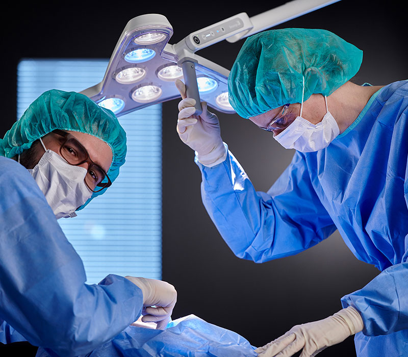 Die TRIANGO 100-3 LED OP-Leuchte von Derungs liefert exzellentes Licht, 3 Farbtemperaturen – für Links- und Rechtshänder und anspruchsvolle Anwendungen geeignet.