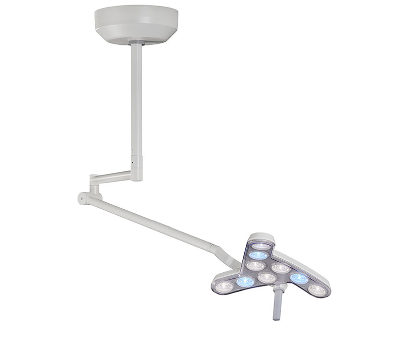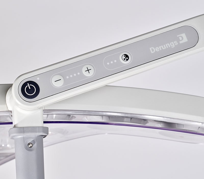 Die hygienische Folientastatur ermöglicht die stufenlose Anpassung der Lichtintensität bei einer einstellbaren Farbtemperatur von etwa 3.700K, 4.300K und 4.700K. Dank modernster LED-Technologie wird ein klares, flimmerfreies Licht mit hervorragender Farbwiedergabe gewährleistet. Das homogene, schattenfreie Beleuchtungsfeld besitzt einen festen Durchmesser von 18 cm bei einem Meter Abstand und bietet eine beeindruckende Ausleuchtungstiefe von 140 cm.