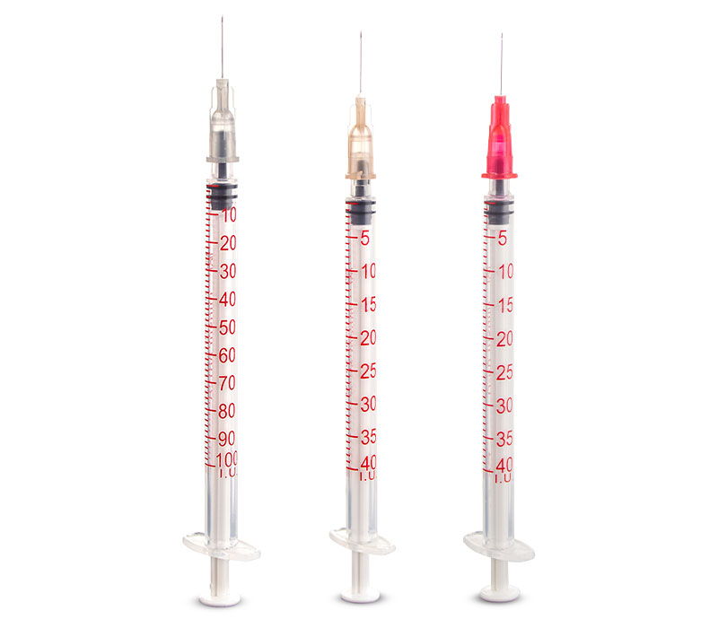 Dispomed 1 ml Insulinspritzen mit roter Skala in 0,01 ml erlauben eine sicheren Verabreichung und stehen als Ausführungen U40 und U100 mit Kanüle zur Auswahl.