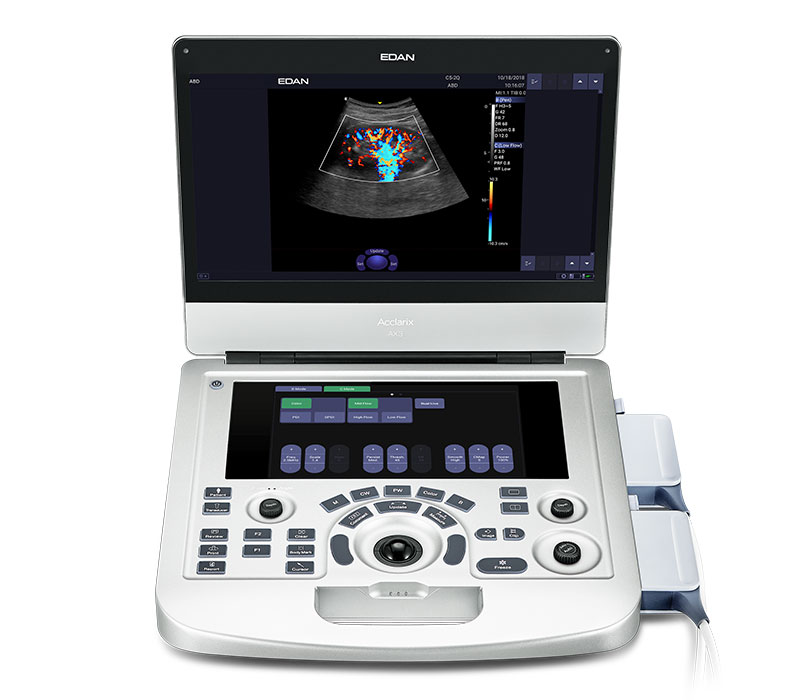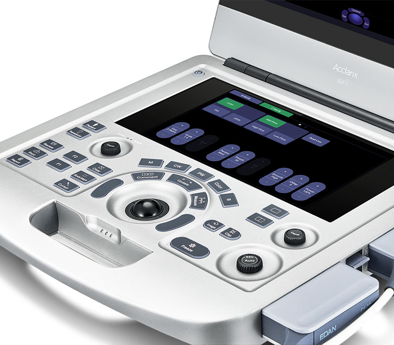 Der Edan Acclarix AX3 Mobiler Farbdoppler mit 15,6″ Display ist per Tastatur und Touchscreen bedienbar und überzeugt durch seine hervorragende Bildqualität.