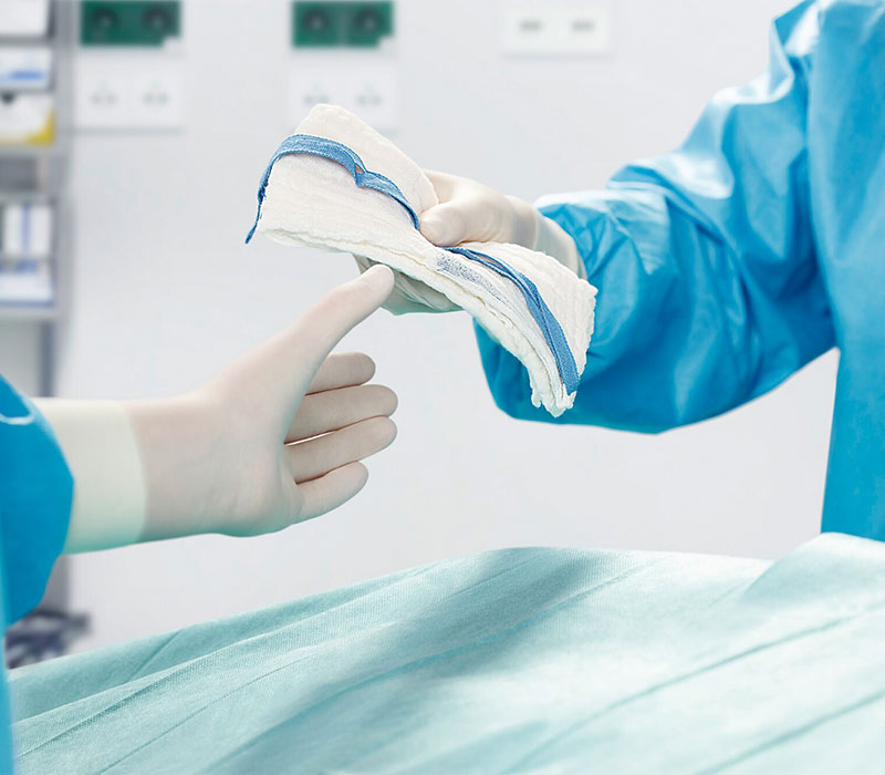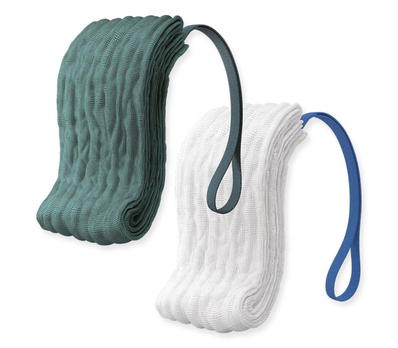 Ein eingewebter Röntgenkontrastfaden erhöht die Sichtbarkeit bei bildgebenden Verfahren und verbessert die Sicherheit für Patienten und das OP-Team.