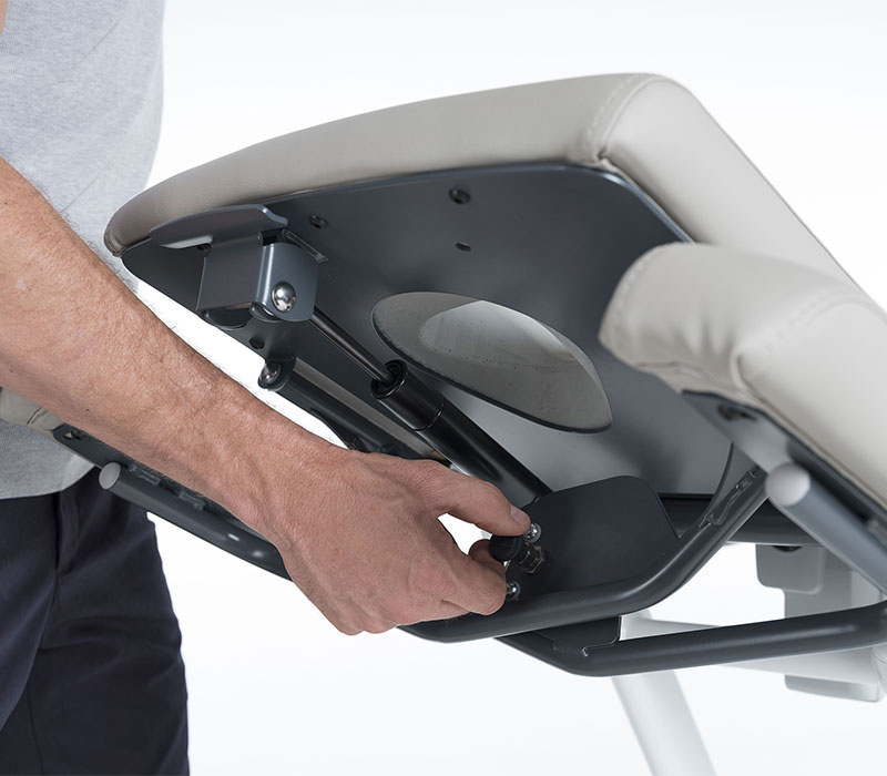 Dank der flexiblen Segmente ist ein umständliches Umlagern der Patienten nicht mehr nötig, die einzelnen Liegenteile lassen sich individuell auf die Gegebenheiten anpassen. Die Höhenverstellung kann hydraulisch, elektromotorisch über einen Fußschalter oder über das i-control System erfolgen. Das i-control-System ermöglicht eine Höhenanpassung durch Betätigen einer Leiste mit dem Fuß – aus jeder Perspektive. Die klassische Variante, mit Verstellung über eine hydraulische Fußpumpe, schafft Unabhängigkeit vom Stromanschluss und erlaubt eine freie Platzierung im Behandlungsraum. Ergonomisches Arbeiten ist durch eine variable Höhenanpassung von 47 cm bis 97 cm garantiert.