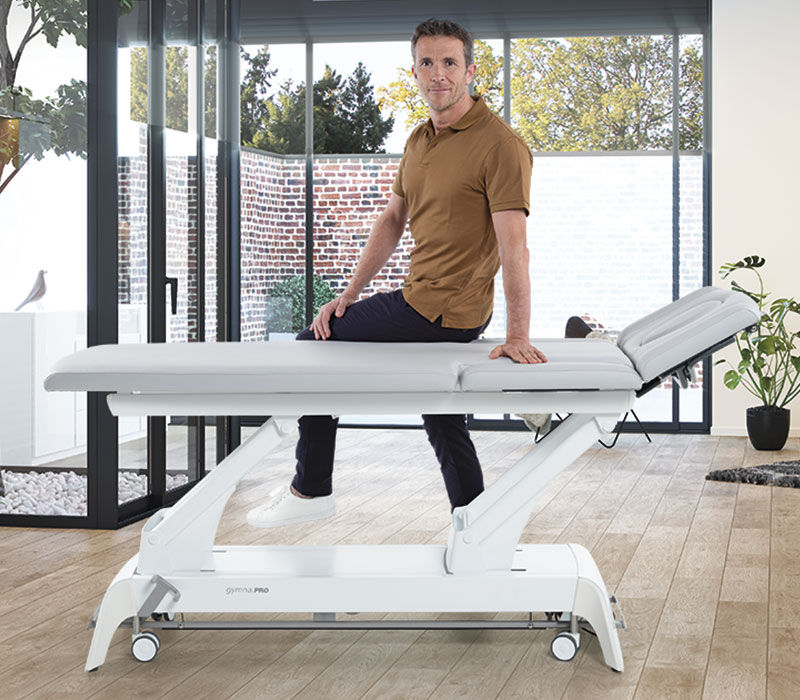 Die gymna.PRO D-Serie ist eine 2-teilige Liege, die für verschiedene Untersuchungen, Behandlungen und Therapien im Gesundheitswesen eingesetzt wird.