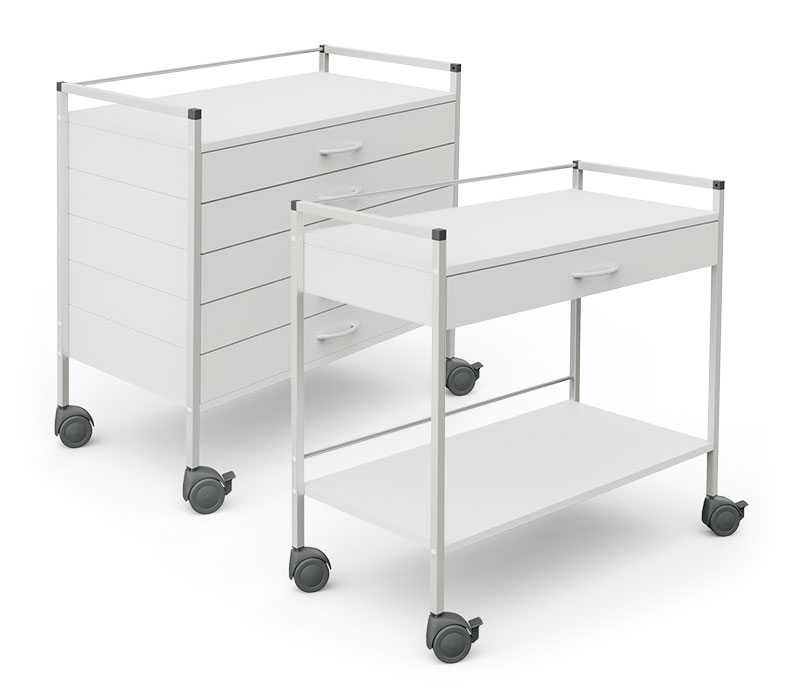 Der Haeberle 08/16 Basiswagen 90 bietet Ordnung am Arbeitsplatz sowie vielseitige Anwendung und optimale Flexibilität und Mobilität in der Arztpraxis und Klinik.