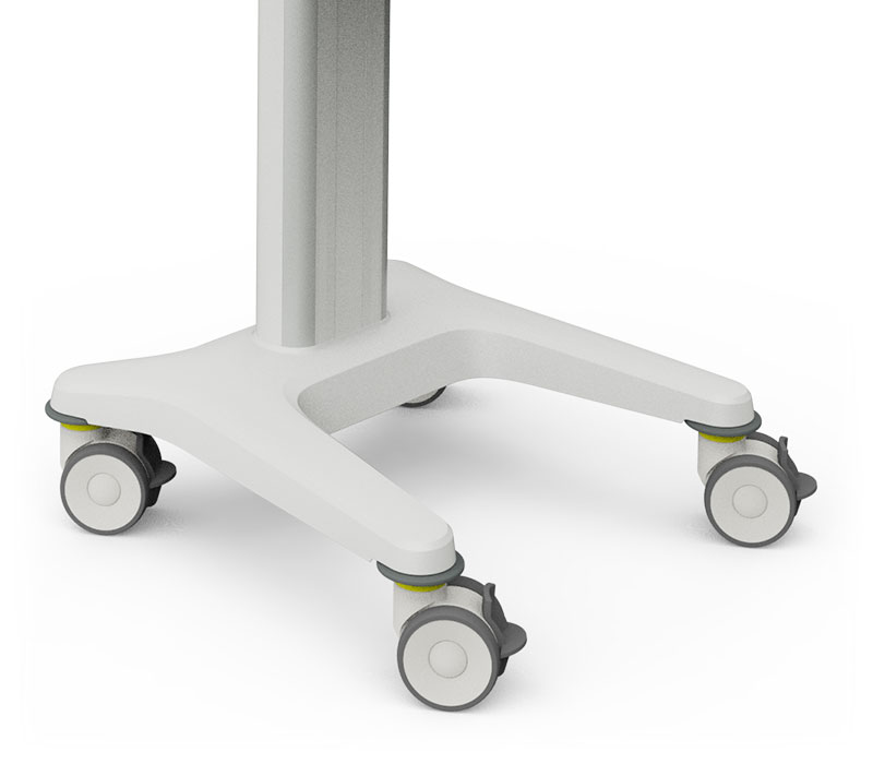 Ein harmonisch geformtes Fahrgestell mit klarer Linienführung ist mit 4 Wandabweisern ausgerüstet, die vor Beschädigung schützen. Die Farbgestaltung in Verkehrsweiß (RAL 9016) unterstützt das ansprechende und moderne Erscheinungsbild.