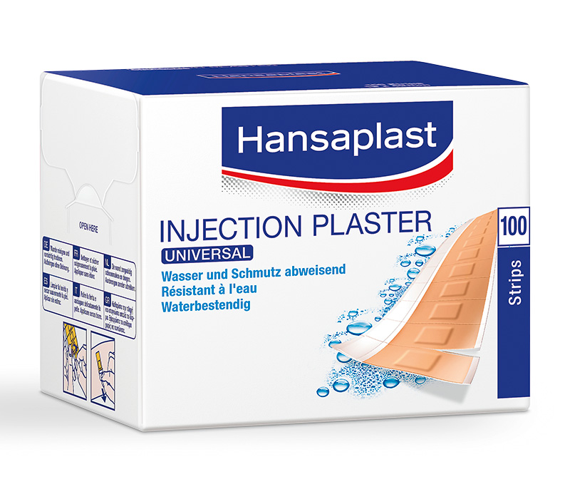 Die Hansaplast Universal Injektionspflaster bestehen aus schmutz- und wasserabweisendem Material. Sie sind atmungsaktiv und zudem sehr hautfreundlich. Kleine Verletzungen können hervorragend geschützt und versorgt werden. Dank der starken Klebkraft wird ein Verrutschen der Pflaster vermieden.