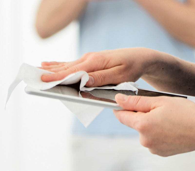 Dank dem großen Wirkspektrum der reißfesten PET-Vlies-Einwegtücher und der umfassenden Verträglichkeit (aldehyd-, farb- und parfümfrei) eignen sie sich auch zur Desinfektion von empfindlichen Materialien wie Aluminium oder Plexiglas.