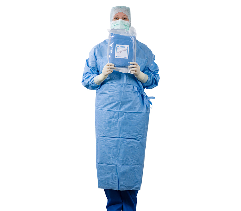 Um ein schnelles, sicheres Anlegen und eine vollständige Abdeckung zu garantieren, ist der OP-Wickelmantel mit einem justierbaren Klettverschluss am Hals und einer extra breiten Rückenüberlappung ausgestattet. Die sterile Einzelverpackung in einem SMS-Einschlag, inklusive zweier Papierhandtücher, sichert die sofortige und aseptische Einsatzbereitschaft.