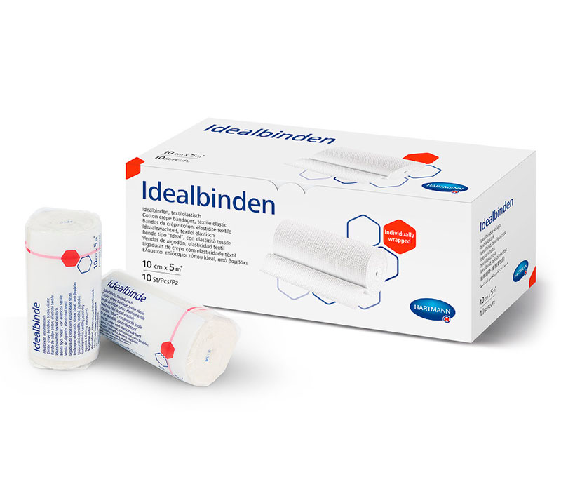 Hartmann Idealbinde – die klassischen, textilelastischen Idealbinden sind mit kurzem Zug und ca. 90% dehnbar. Die Elastizität der Binden, die beim Tragen nachlässt, kann durch Waschen zurückgewonnen werden. Verfügbar in vielen verschiedenen Breiten.