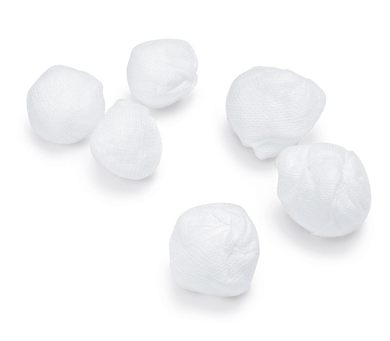 Der Schlinggazetupfer nach EN 14079 ist aus nur einem Mullstück gefertigt und so geschlungen, dass alle Schnittkanten sicher im Inneren liegen.