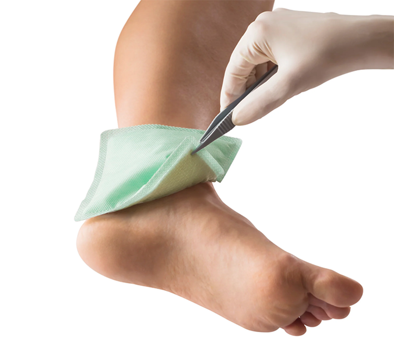 Dank der nicht haftenden Silikonkontaktschicht kann der Verband schmerzarm und atraumatisch gewechselt werden. Die Silikonschicht haftet sanft auf trockener Haut, aber nicht auf der feuchten Wunde oder dem empfindlichen Wundrand, wodurch das Risiko von Hautirritationen und Gewebeschädigungen beim Entfernen minimiert wird.