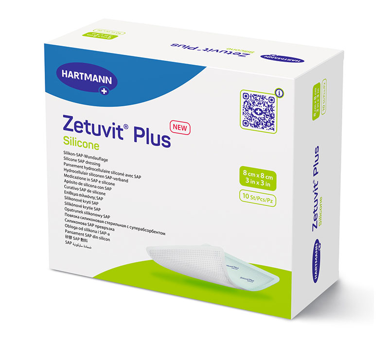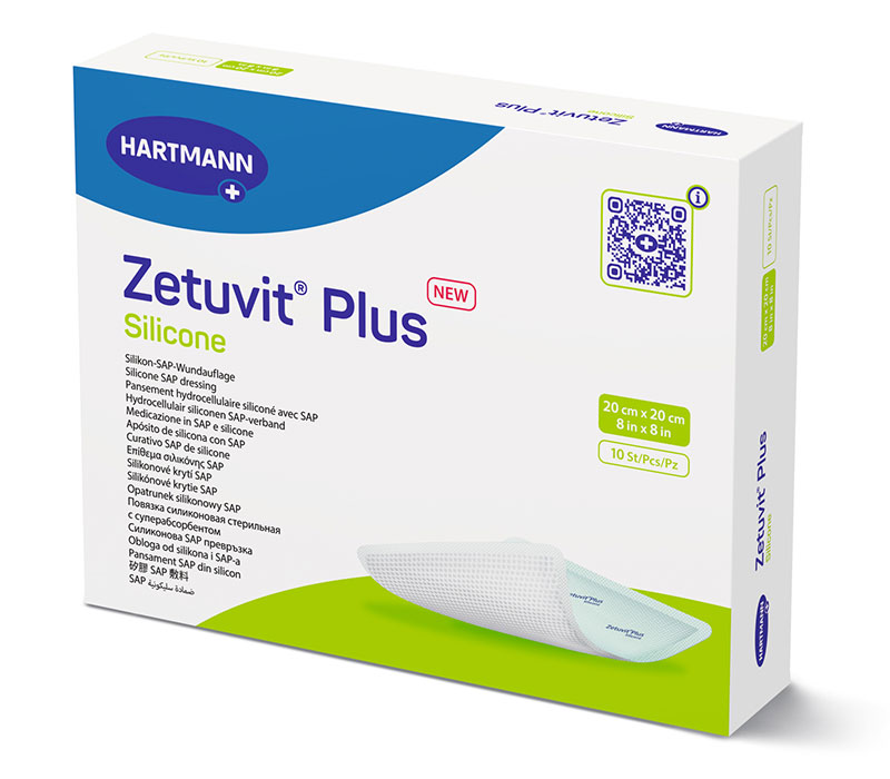 Hartmann Zetuvit Plus Silicone ist ein nicht haftender Superabsorber-Wundverband mit Silikonwundkontaktschicht zum Behandeln mäßig bis stark exsudierender Wunden.