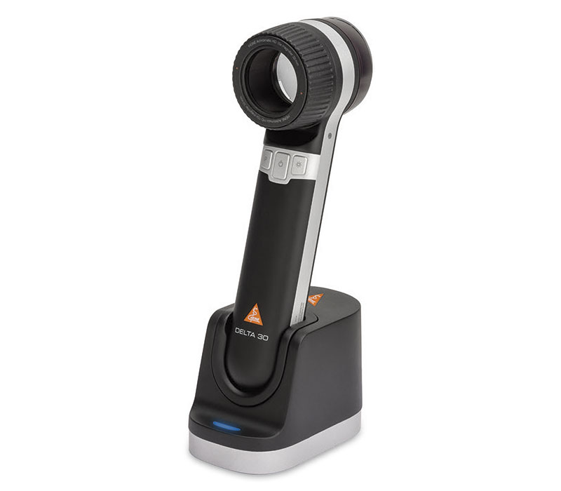 Das Heine DELTA 30 LED High-End-Dermatoskop mit Li-Ion-Akku, großem Sichtfeld und 10-facher Vergrößerung für präzise Diagnostik.