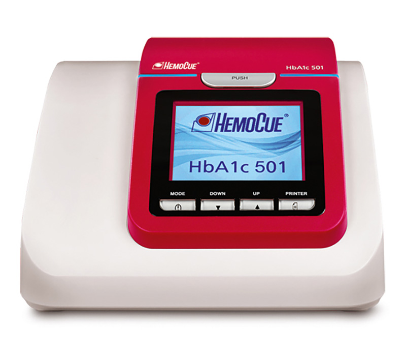 Das automatische HemoCue HbA1c 501 Blutzucker-Analysesystem bietet die laborgenaue Bestimmung des Hämoglobin-Werts am Point-of-Care in nur wenigen Minuten.