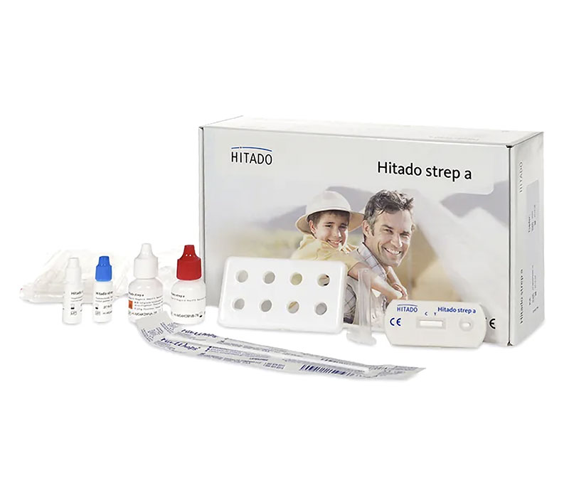 Der Hitado Strep A Streptokokken Schnelltest ist ein visueller Immunoassay zum qualitativen Nachweis von Gruppe-A-Streptokokken-Antigenen. Der Test wird mit Rachenabstrichproben durchgeführt und liefert in nur 5 Minuten ein Ergebnis zur Unterstützung der Diagnose bei Patienten mit entsprechenden Symptomen.