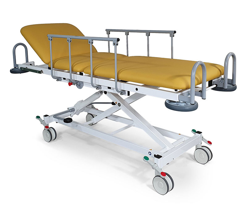 Die 3-teilige K. H. Dewert Transport- und Aufwachliege DX1 (1095H) mit hydraulischer Höhenverstellung bietet eine komfortable Handhabung und erfüllt höchste Sicherheitsanforderungen.