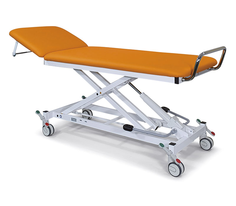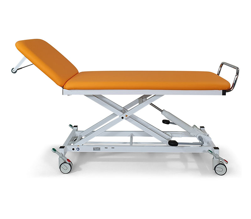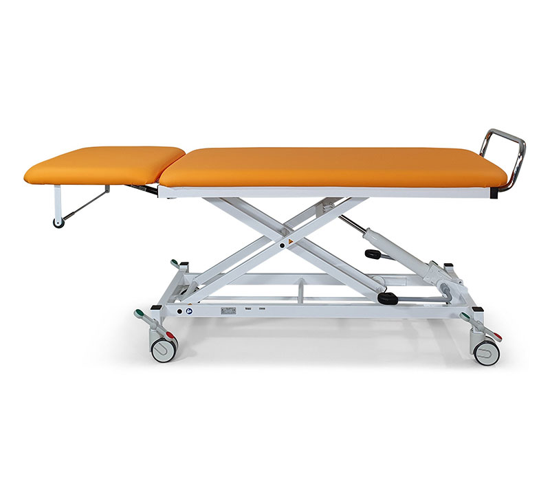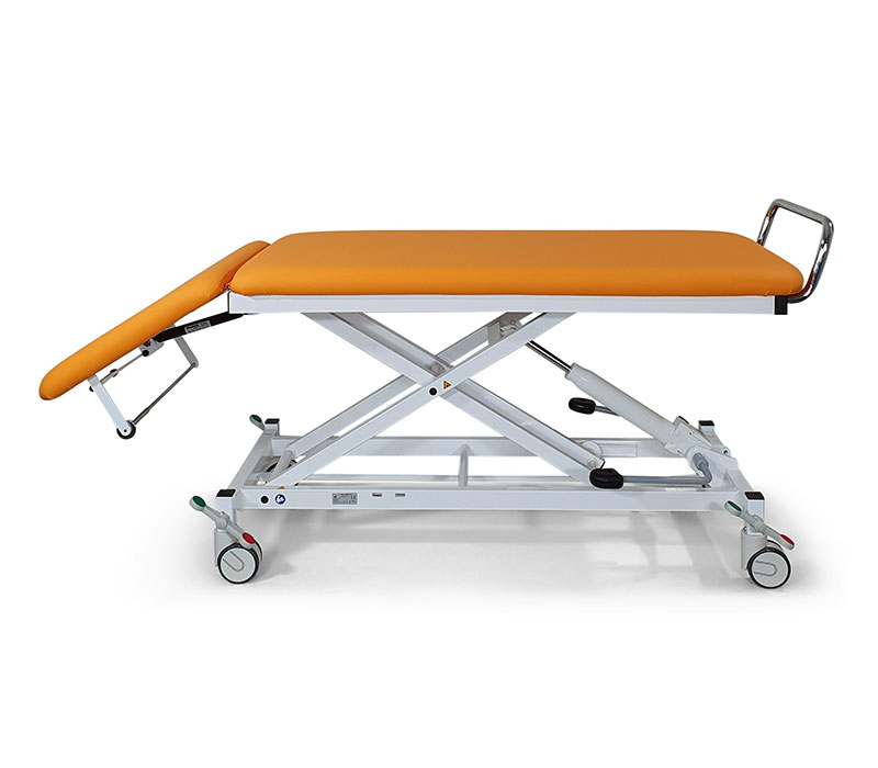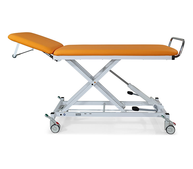 Mit ihrer hydraulischen Höhenverstellung im Bereich von 500 bis 920 mm lässt sich die Behandlungsliege mittels Hydraulikpumpe mit großer Übersetzungen über den beidseitig angebrachten Tritthebel leicht verstellen. Ein besonders stabiles Twin-Scherensystem ermöglicht dabei eine hohe Kraftübertragung. Das Kopfteil der Liege ist stufenlos von -35° bis +45° durch eine Gasdruckfeder verstellbar, was eine optimale Positionierung des Patienten erlaubt.