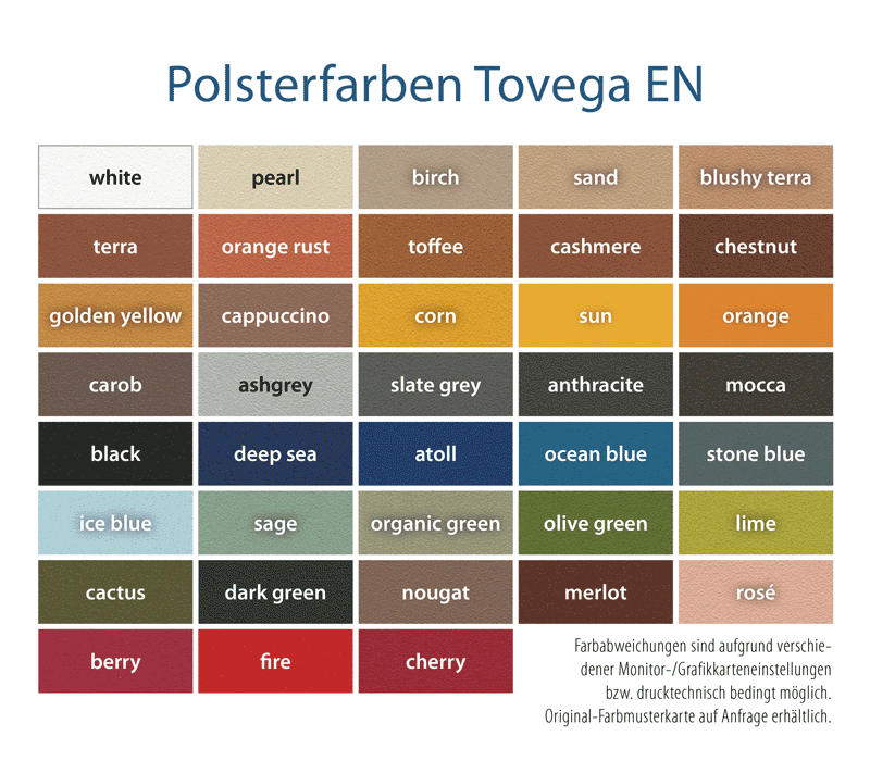 - Wählbares Polstermaterial: Skai Tovega EN oder Skai Toronto EN