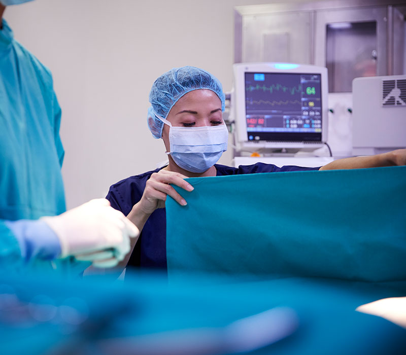 Die Kombination aus hydrophilem Polypropylen-Vlies und einer koextrudierter, zweifarbigen PE-Folie garantiert eine sichere Barriere gegen Feuchtigkeit und Keime. Das Material ist saugstark, absolut flüssigkeitsdicht und besonders reißfest. Dank seiner hervorragenden Drapierfähigkeit lässt sich der Tisch schnell und sicher abdecken, was höchste hygienische Standards im OP-Alltag unterstützt.