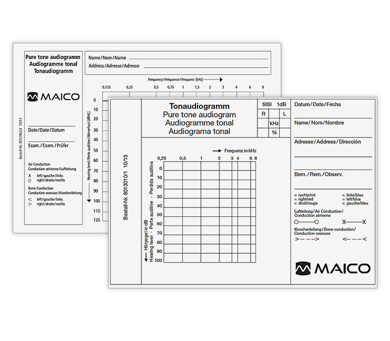 Startseite › Diagnostik › Ohruntersuchung › Audio- & Tympanometer › Maico Audiogrammblöcke für ST 20 / MA 25 / MA 28 (5 x 50 Blatt)