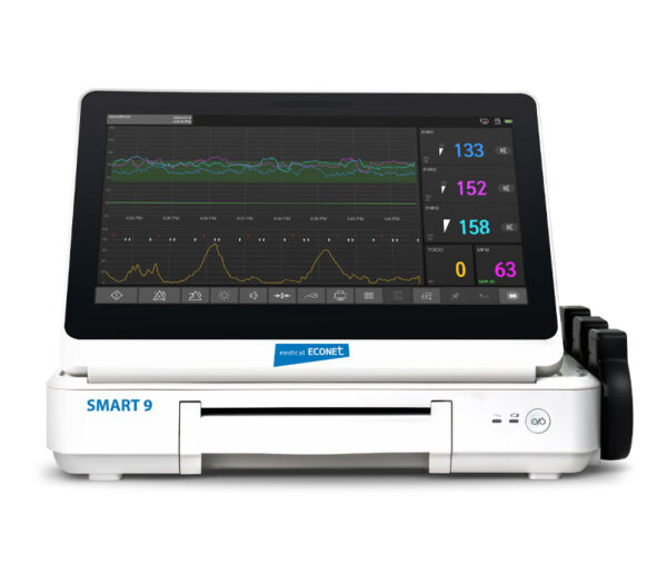 medical ECONET SMART 9 Maternal-Fetalmonitor Zwilling / Drilling – hochleistungsfähiges CTG inkl. Mutterfunktionsset (EKG, SpO2, Temp, NIBP) für Kliniken und geburtshilfliche Zentren.