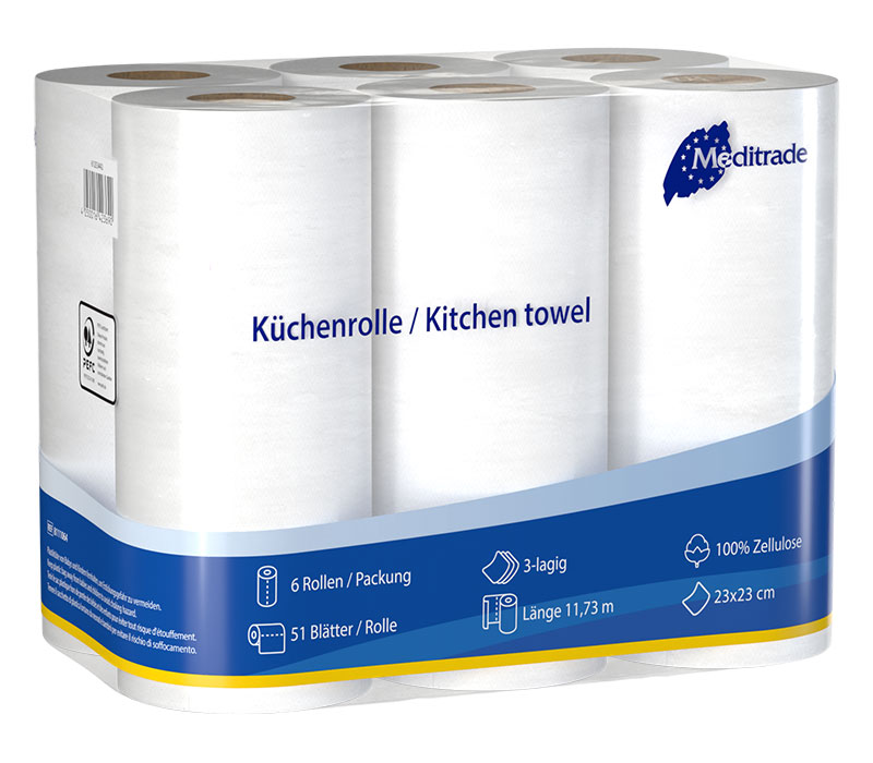 Meditrade Allzweckrolle / Küchenrolle, 3-lagig (6 Rollen)
