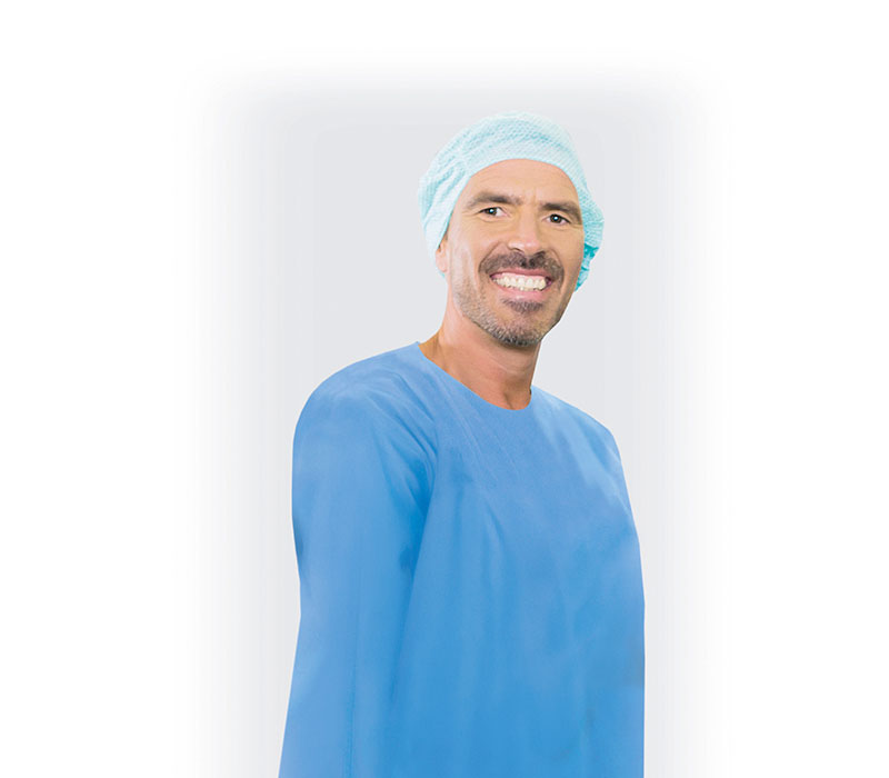 Das Bündchen sowie Verschlussbänder an den Ärmeln und an Hals und Taille sorgen für Dichtigkeit und Tragekomfort. Zudem wurde er im trockenen und im feuchten Zustand nach DIN EN ISO 22610 und DIN EN ISO 22612 auf seine Schutzwirkung gegen Keime sowie gegen MRSA und Noroviren geprüft und zugelassen.