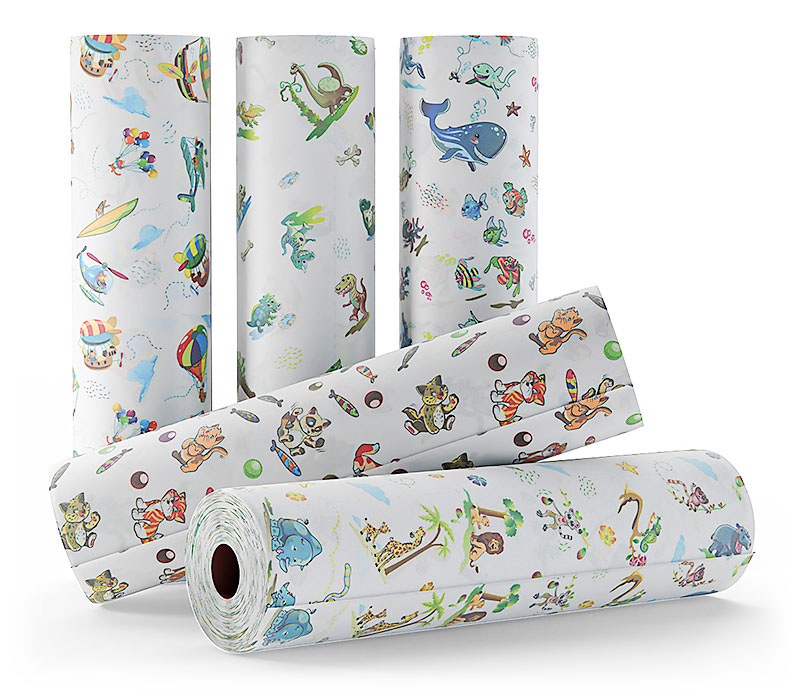 Startseite › Praxishygiene › Tücher & Papiere › Liegenpapier & Papierrollenhalter › Meditrade Rollicel KidsRoll Ärztekrepp ohne Beschichtung, 2-lagig, 50 cm Breite (9 Rollen je 46 m)