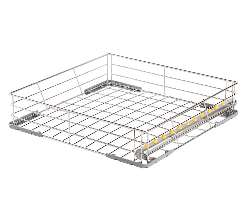 Im Basiskorb steht Platz über 6 Flex-Segmente zur variablen Positionierung von Einsatzgestellen und Körben zur Verfügung. Die Konstruktion erlaubt die Beladung auf bis zu 2 Ebenen für eine maximale Beladungskapazität.