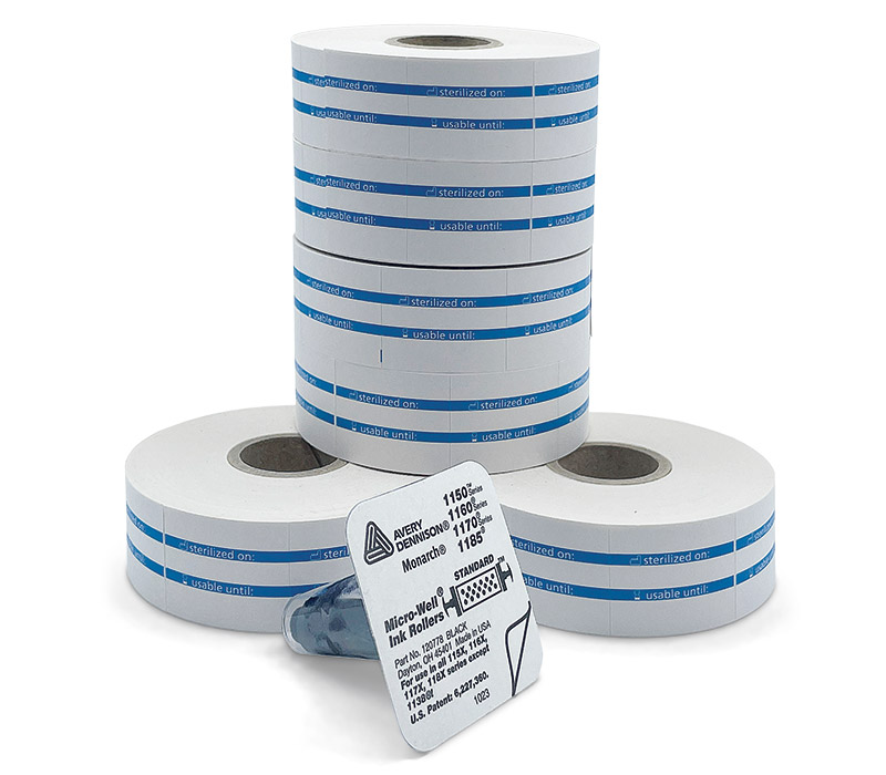 Die Melag Ersatzrollen erlauben in Kombination mit dem MELAdoc Etikettendrucker die sichere Beschriftung des Sterilguts mit allen relevanten Daten.