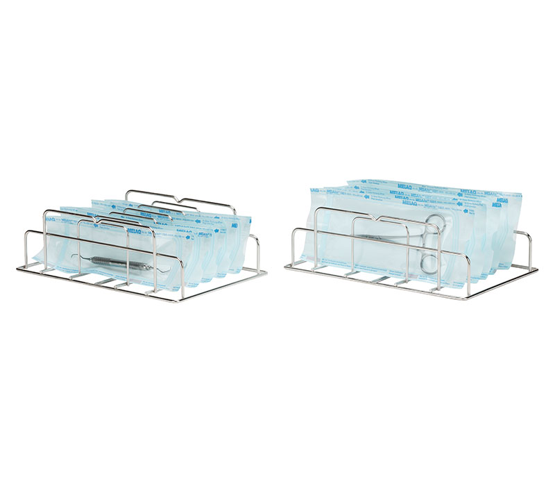Der praktische Melag Folienhalter eignet sich für Autoklaven mit 35cm Kesseltiefe für eine optimale Sterilisation von folienverpackten Instrumenten.
