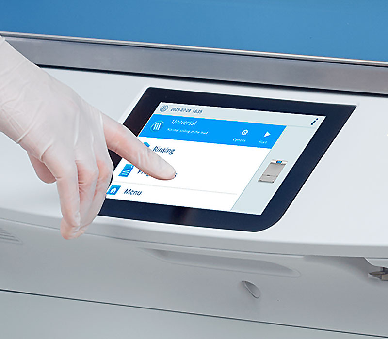 Das Smart-Touch-Display bietet eine benutzerfreundliche Steuerung und ist mit der Freigabesoftware ProControl ausgestattet. Diese ermöglicht eine schnelle, papierlose Benutzerauthentifizierung sowie Chargenfreigabe direkt am Gerät. Durch mehrere integrierte Schnittstellen gewährleistet die Melatherm 20 Serie eine rechtssichere Dokumentation und unterstützt eine lückenlose Nachverfolgbarkeit und Qualitätssicherung aller Reinigungsprozesse.