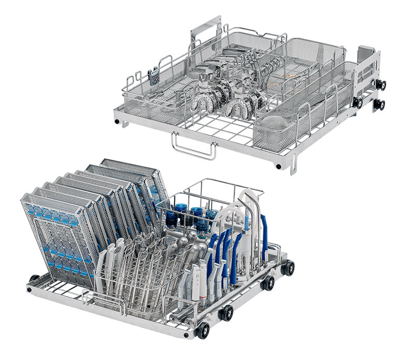 Der große Oberkorb bietet die perfekte Basis für individuelle Beladungskonzepte. Er lässt sich flexibel mit Körben und Einsätzen kombinieren, um den spezifischen Anforderungen der Zahnarztpraxis gerecht zu werden.