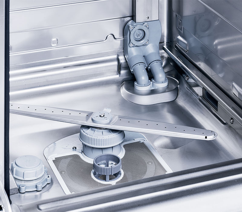 Kombiniert mit den neuen Spülarmen und der besonders leistungsstarken Umwälzpumpe sorgt AquaBoost für bis zu 63 % bessere Reinigungsergebnisse im Vergleich zum Melatherm 10 Evolution (in Anlehnung an die ÖGSV Leitlinie 3a).