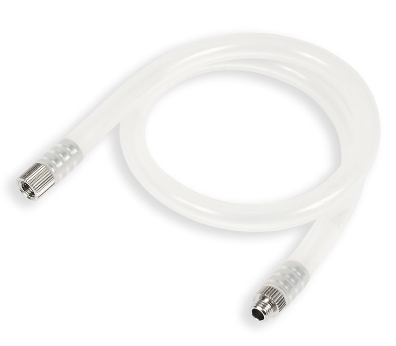 Der Melag Silikonschlauch mit Anschlüssen eignet sich optimal für lange Hohlkörper und dient dem Anschluss an Injektorschiene oder an 2- und 3-fach Verteilern.