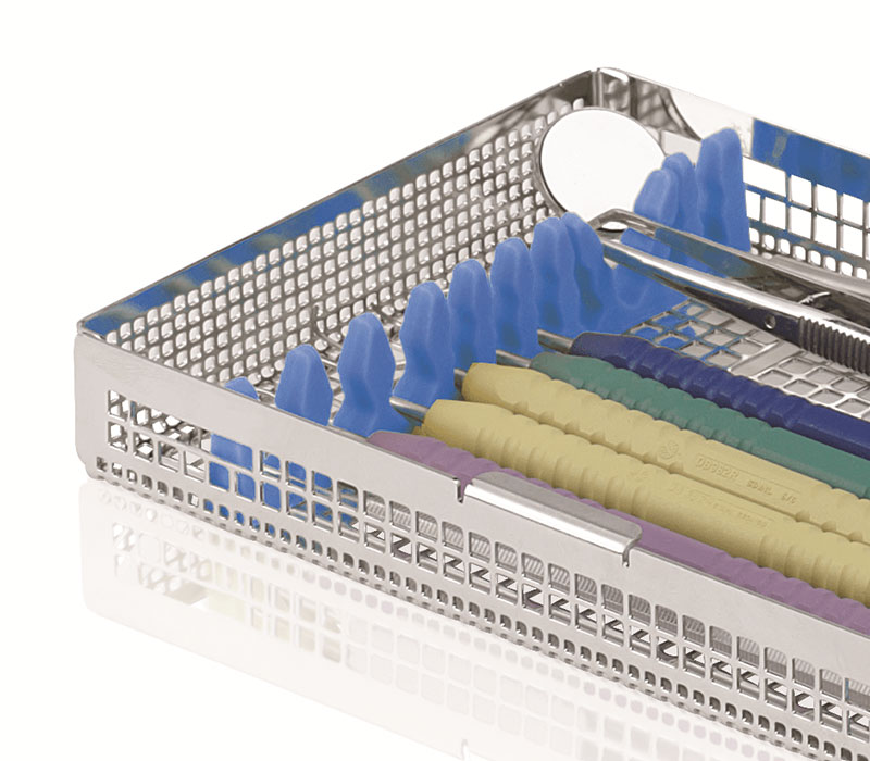 Zur Vermeidung von Spülschatten sollten möglichst wenige Stege eingesetzt werden, um optimale Reinigungsergebnisse im Melatherm zu gewährleisten. Für eine bessere Organisation und zur Optimierung des Arbeitsablaufs in der Instrumentenaufbereitung stehen die Silikonstege in 10 verschiedenen Farben zur Auswahl.