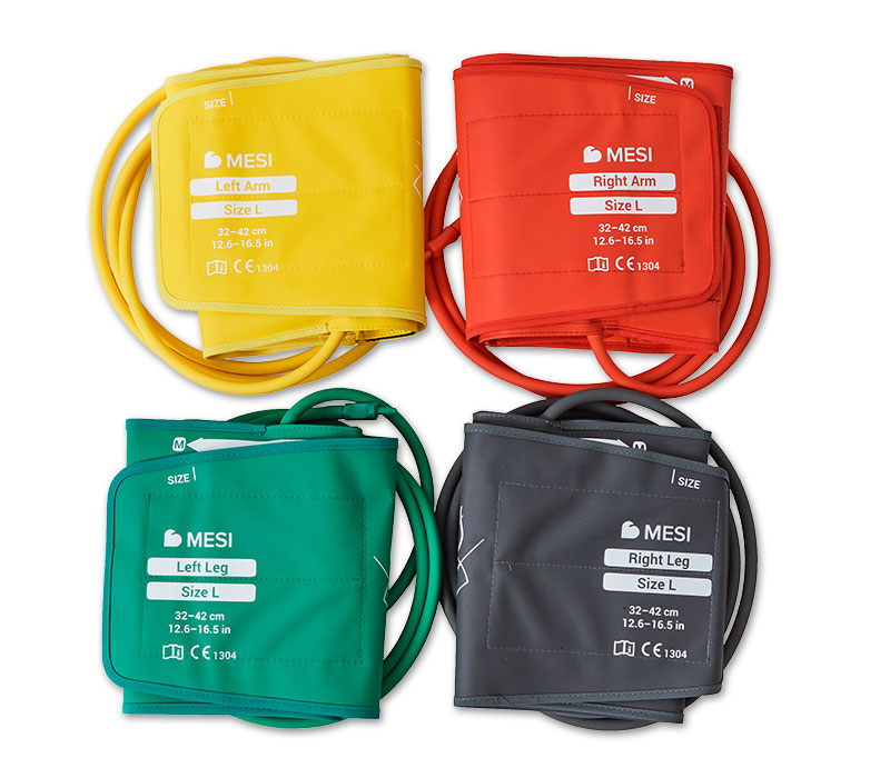 Das MESI ABPI MD Manschettenset (4-teilig) zum MESI ABPI MD Messsystem der 2. Generation bietet simultane ABI-Messung an beiden Oberarmen und Beinen von Patienten.