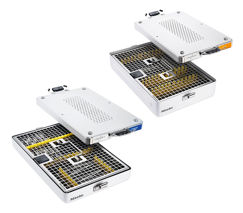 Die Miele EasyStore APWD Sterilcontainer bieten eine optimale Lösung für die Sterilisation von Instrumenten sowie eine sachgerechte Lagerung und den sicheren Transport steriler Instrumente. Das System senkt den täglichen Arbeitsaufwand deutlich gegenüber der konventionellen Einzelverpackung und reduziert gleichzeitig Verbrauchsmaterialien sowie Betriebskosten.