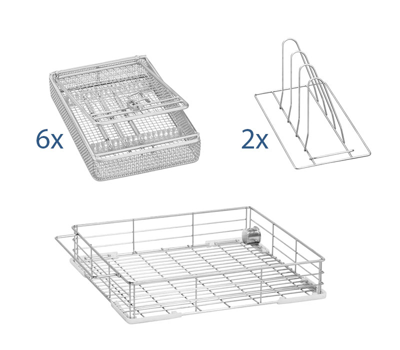 Das Miele Medical-Set für PWD 8534 Auftisch-RDG bietet eine abgestimmte Bestückung zur effizienten Aufbereitung von einer Vielzahl medizinischer Instrumente.