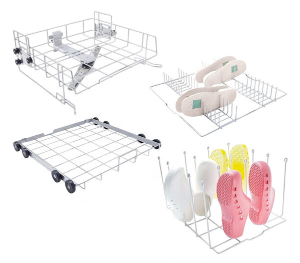 Das Miele OP-Schuhe-Aufbereitungsset für PWD und PG Thermodesinfektoren (RDG) umfasst eine optimale Bestückung. Es ist mit dem höhenverstellbaren Oberkorb A 101 zur Aufnahme von Einsätzen und dem Unterkorb A 151 zur Aufnahme marktüblicher DIN-Siebschalen sowie diverser Einsätze ausgestattet.