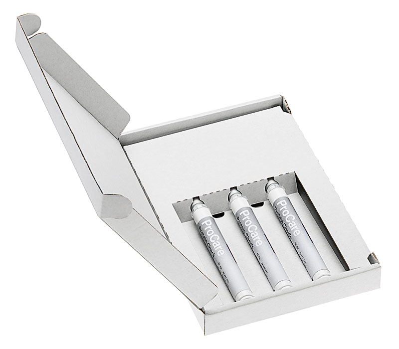 Die Verpackungseinheit umfasst 3 Teststifte, je Stift lassen bis zu 50 Anwendungen durchführen. Der Miele ProCare Protein Check unterstützt die Qualitätssicherung und entspricht höchsten Anforderungen an eine zuverlässige Hygieneüberprüfung.