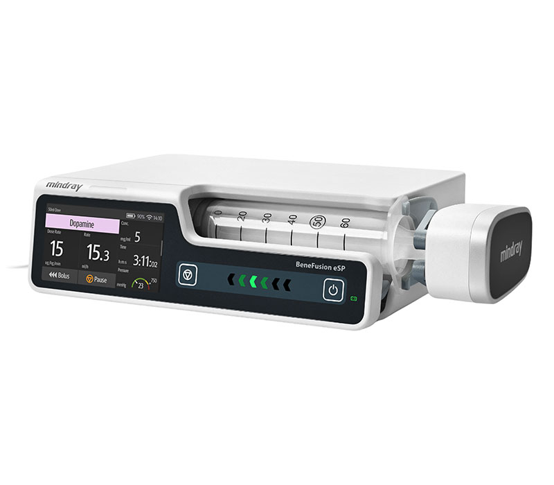 Die mobile Spritzenpumpe Mindray BeneFusion eSP ist ein Infusionssystem mit intuitiver Touchscreen-Bedienung und sicherheitsgerichteten Funktionen für präzise Infusionstherapien.