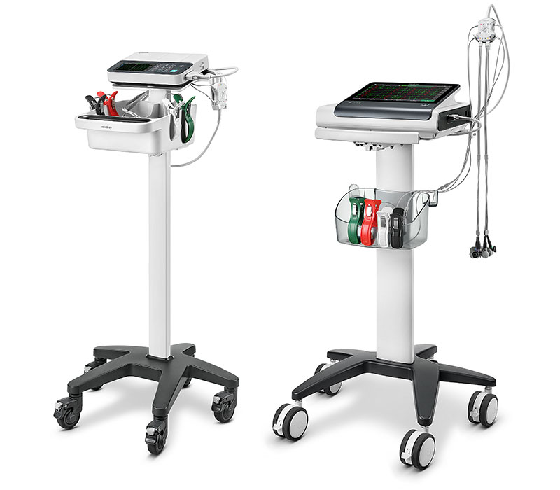 Die Mindray Gerätewagen für das BeneHeart R300 bzw. R700 EKG mit 5-Fuß-Stativ bieten eine optimale mobile Lösung zur sicheren Aufbewahrung der EKG-Geräte samt Zubehör.